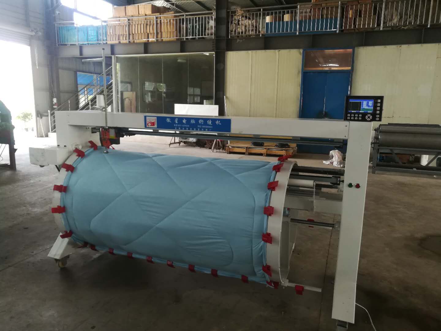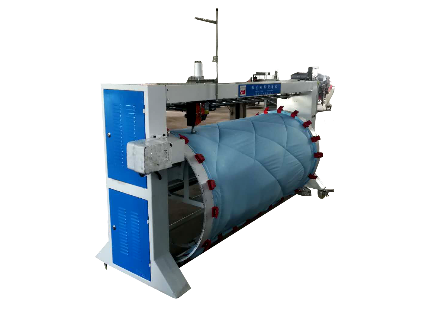 滾筒式電腦絎縫機,占地面積小,這款絎縫機的出現緩解了很多客戶面對房租越來越貴,店鋪面積越來越小的尷尬,解決了面積小機器放置不小的問題,這款絎縫機占地面積小,底座帶有萬向輪,可根據客戶自己的需求隨意移動工作場地。
